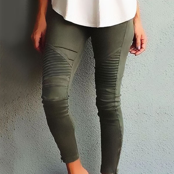 Fashion Solid Color Crinkle Slim Fit Pants For Women