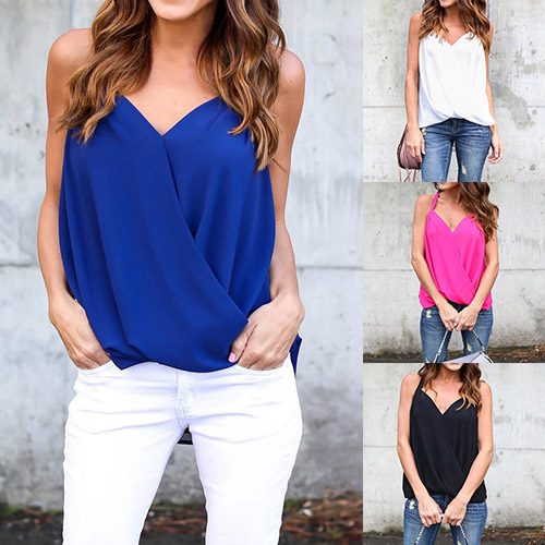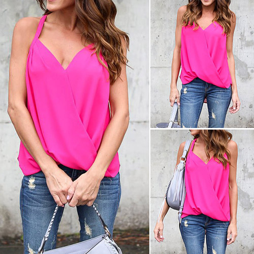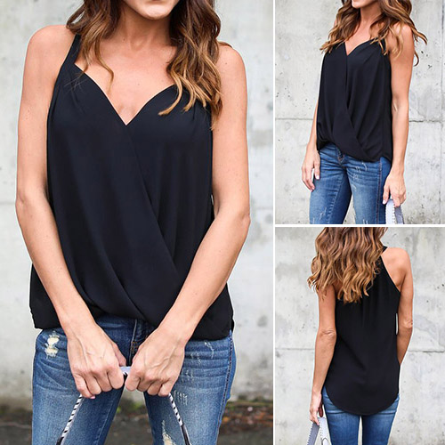 Wanna a cool summer? Then this chiffon cami top can help you achieve that. Solid color style,its crossover