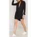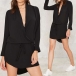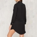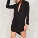 mysterious and sexy black hue, with deep v-neck, long sleeve and irregular hemline design,