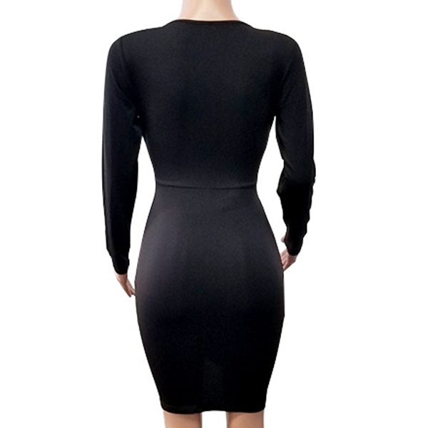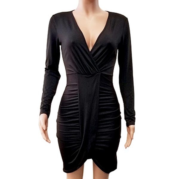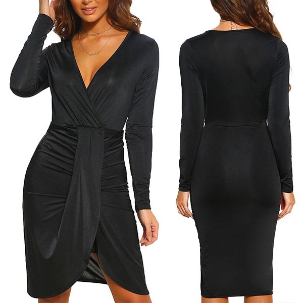 The stylsih dress is crafted with high quality and soft material,with soid color,long sleeve and deep v-neck