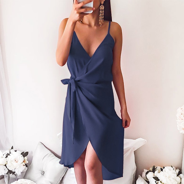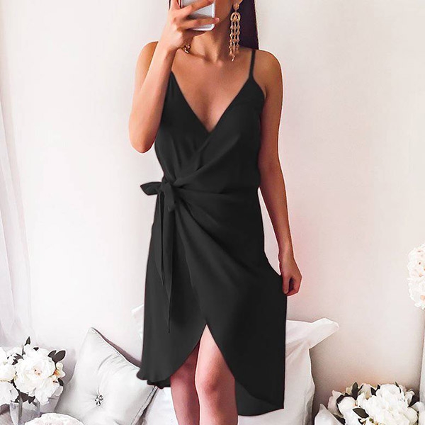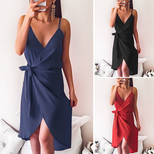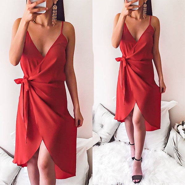 with sleeveless,off-shoulder and deep v-neck, which can highlight your female charm .Match it with a