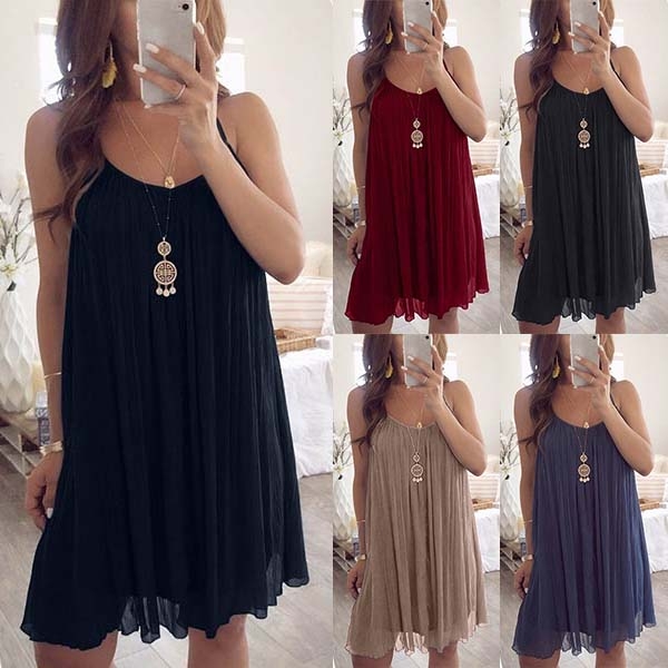 which can give you a comfortable feeling.Designed with deep v-neck, sleeveless and pleated hemline,