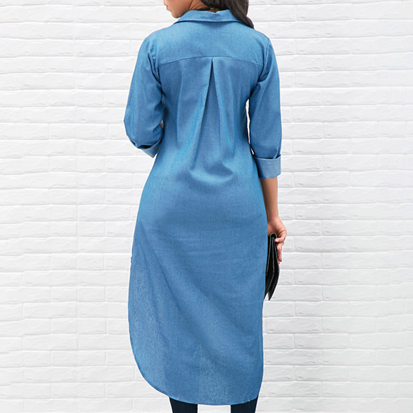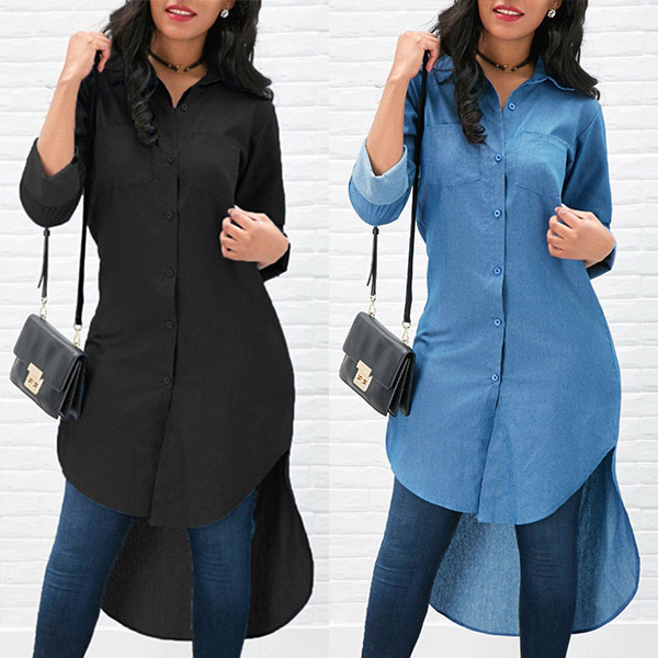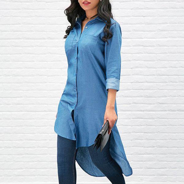 beauty when you slip into this top. The top is decorated with solid denim color and long sleeve cold shouder
