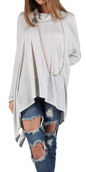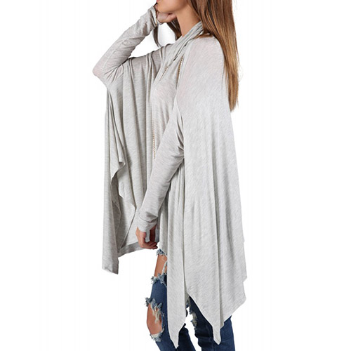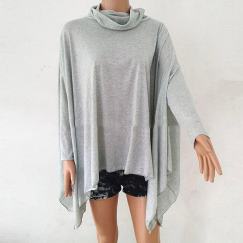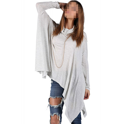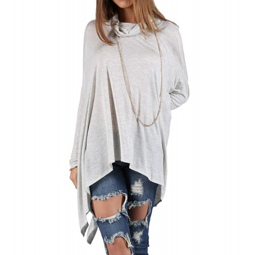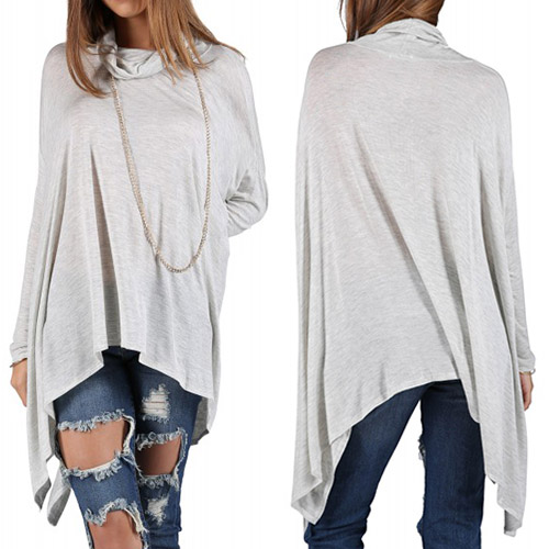 Fashion Solid Color Dolman Sleeve Cowl Neck Irregular Hem Loose Tops
