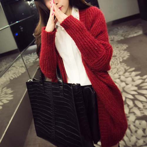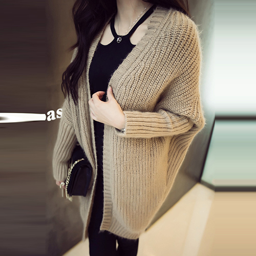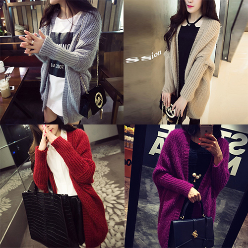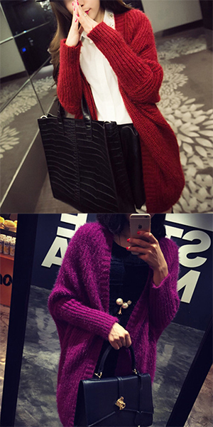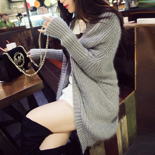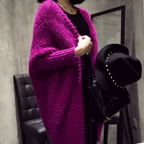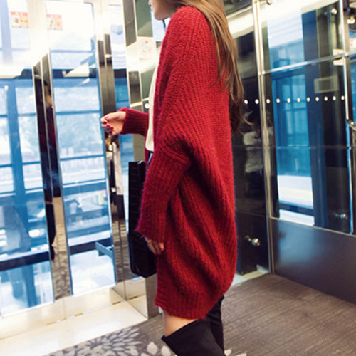 Fashion Solid Color Dolman Sleeve Knit Cardigan