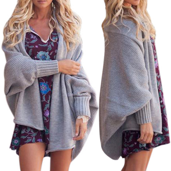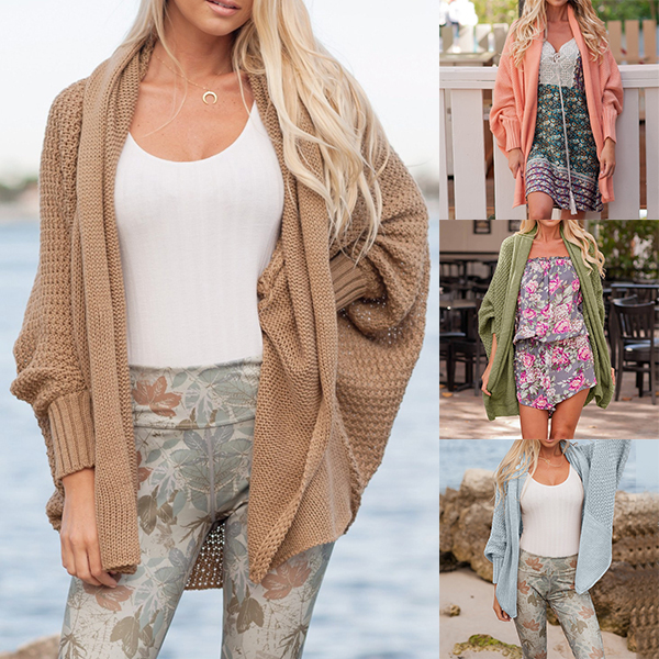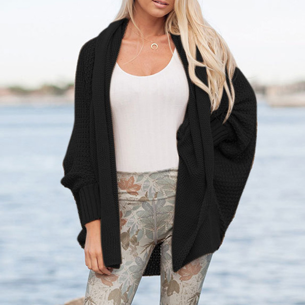 Fashion Solid Color Dolman Sleeve Loose Knit Cardigan