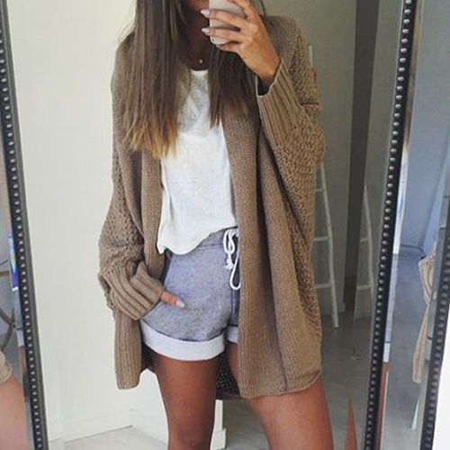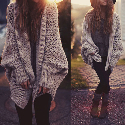 Fashion Solid Color Dolman Sleeve Open-front Knit Cardigan