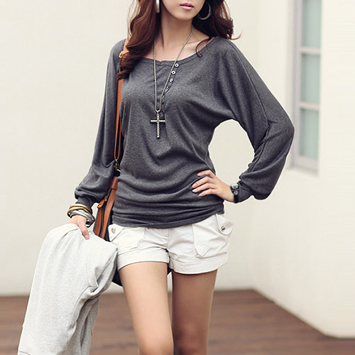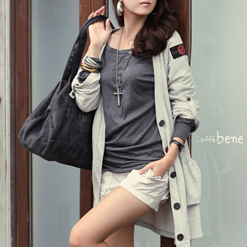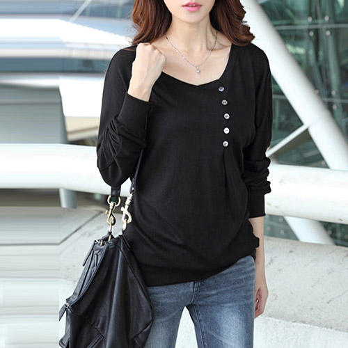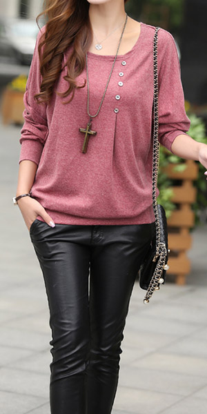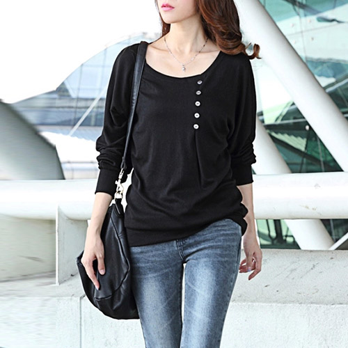 Solid color style,front decorated with buttons,making it look not so monotonous. Loose silhouette