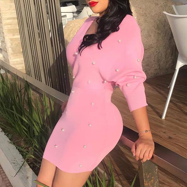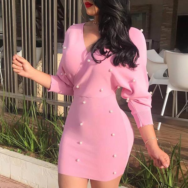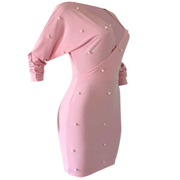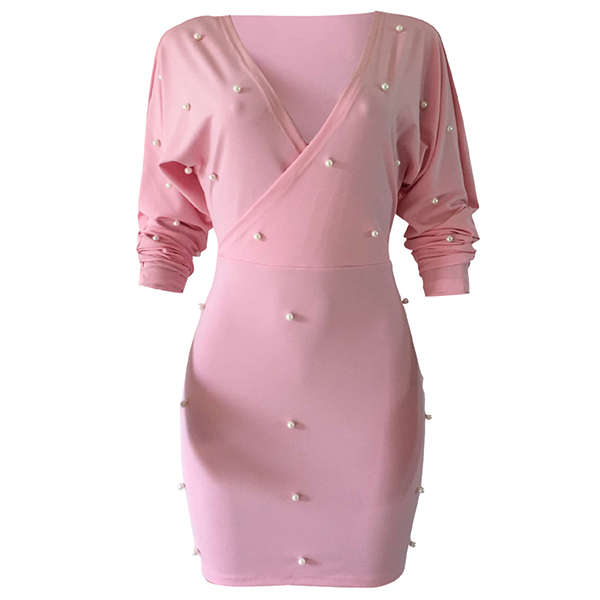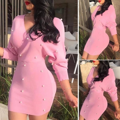 This dress comes with a sweet yet feminine pink tone,finished with dolman sleeve,v-neck and a fit silhouette,