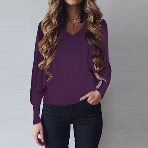 with dolman sleeve and v-neckline,simple and chic,this knit top is perfect for matching with your any bottoms.