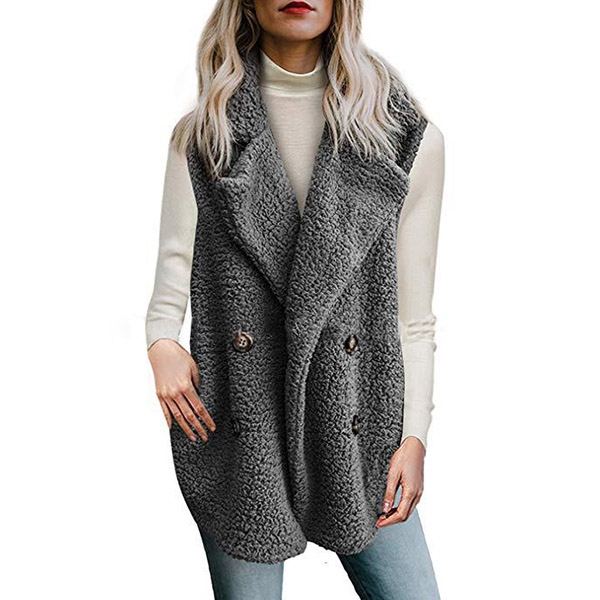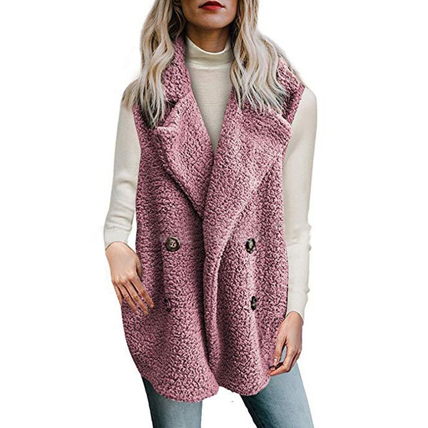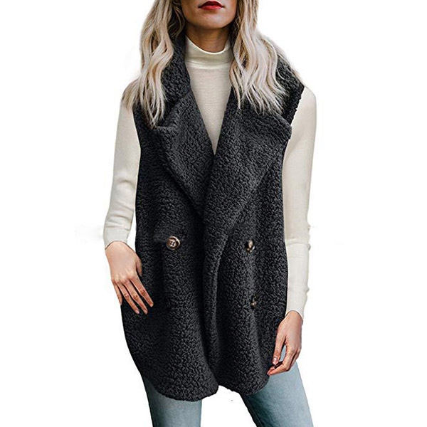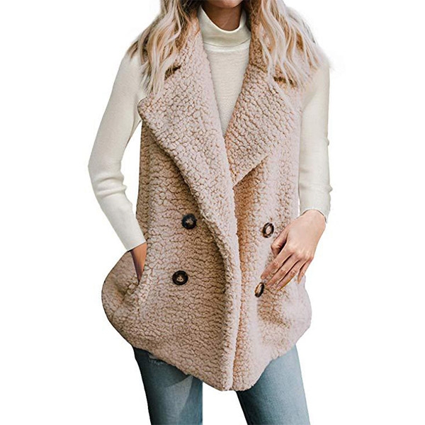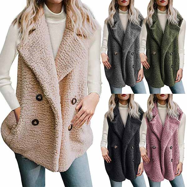 sleeveless,lapel,slanted pockets and double-breasted design,this piece will give you a warm