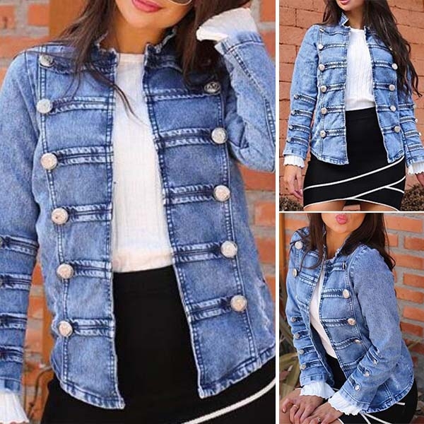 Use this fashionable denim cardigan to show off your beauty,my girl. It is styled with long sleeve,stand collar