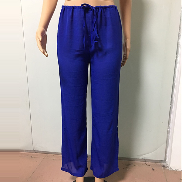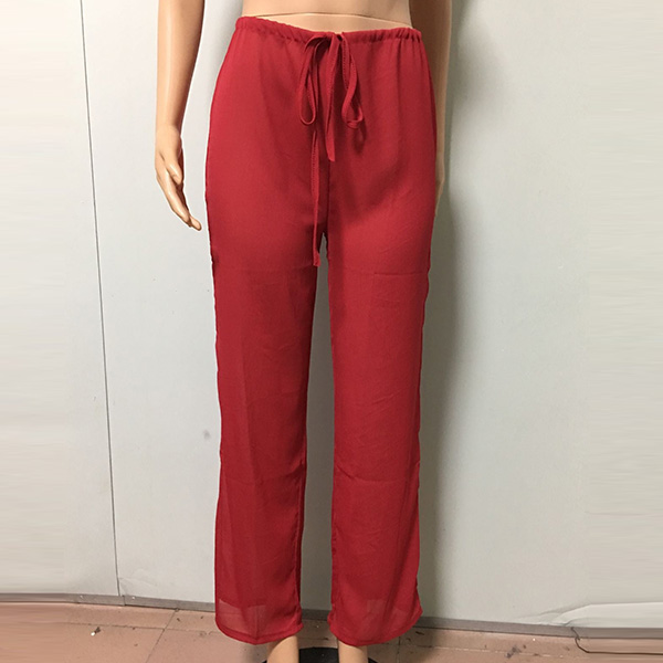 Crafted from soft and breezy chiffon fabric,finished with a drawstring waist and a wide-leg silhouette,