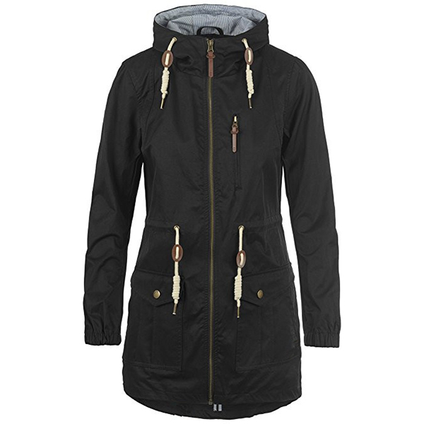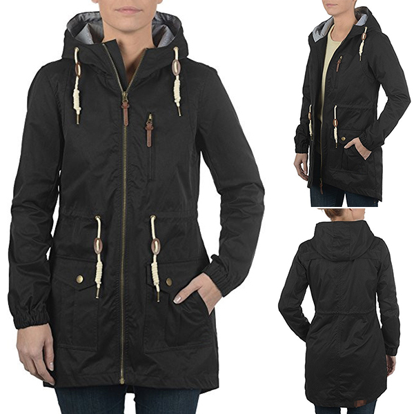 The high-speed and busy city life brings people a simple living model. The simple hooded drawstring windbreaker