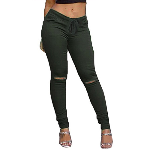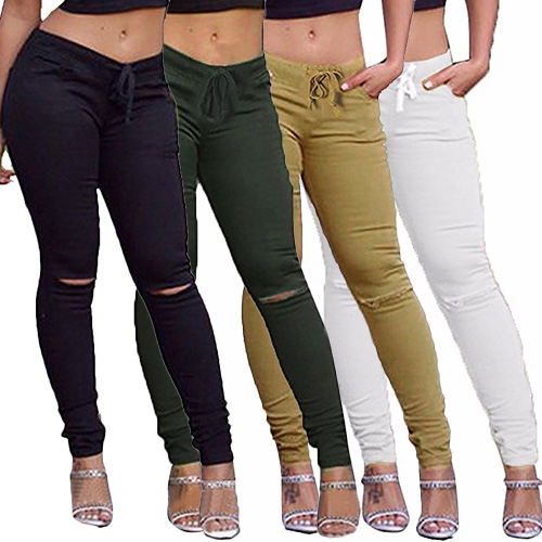 You can show your charming figure via the pants. It is equipped with solid color and ripped