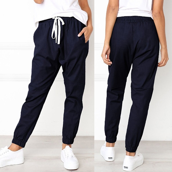 Add a dash of comfy to your daily look with this casual pants. It comes with a solid color,simple yet stylish,