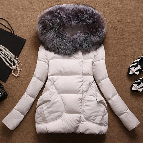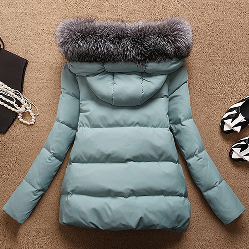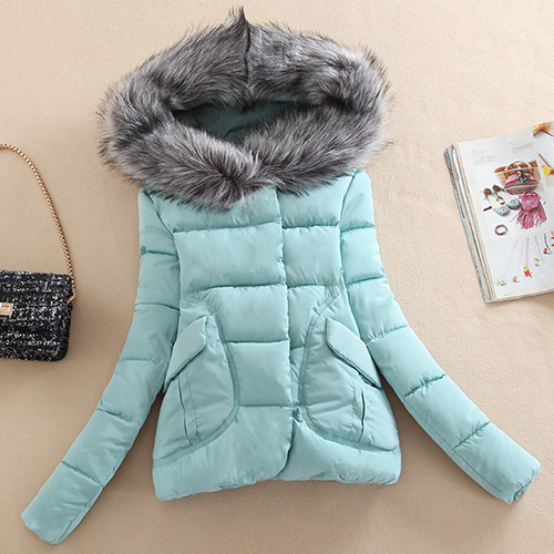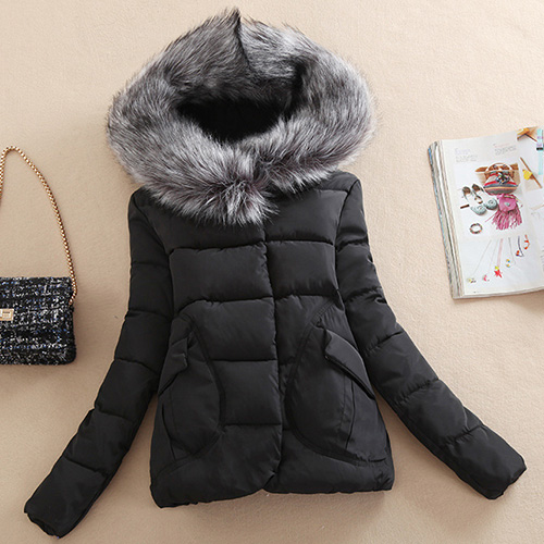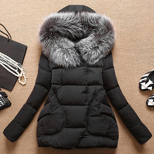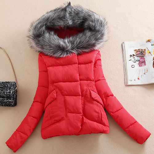 with long sleeve,faux fur trim hood and a sleek silhouette. And its hand pockets design keeps
