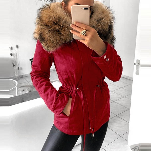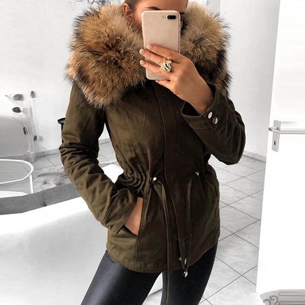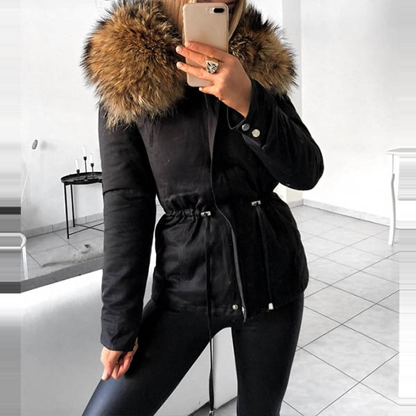 When the chilly winter hits,this coat is worth to arouse your attention. The faux fur spliced hooded silhouette design not only can keep you warm,but also can boost its entire charm. And the drawstring waist design will showcase your slender figure. Your perfect partner in these cold days.