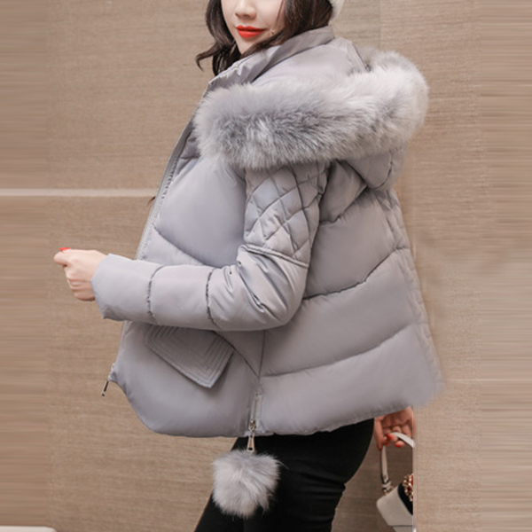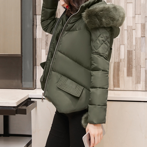 outfitted with long sleeve,faux fur spliced hooded silhouette and an irregular hem,this padded coat not only can