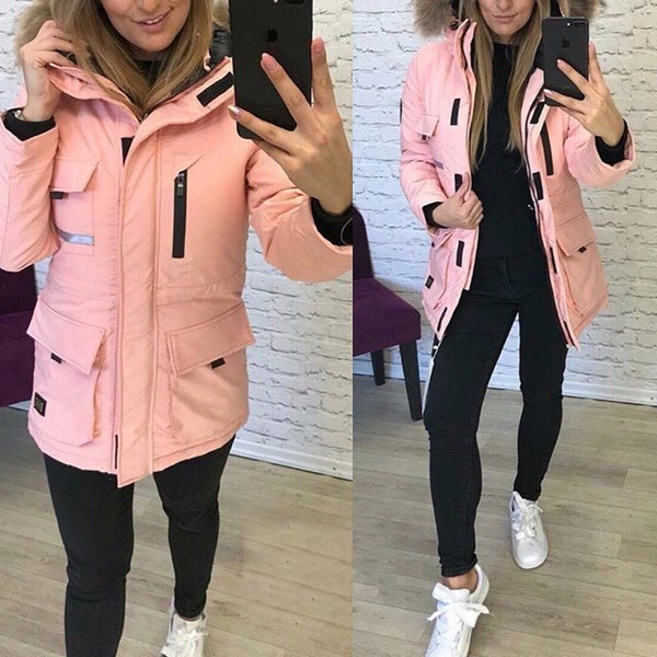 When the chilly winter hits,you can slip into this padded coat to stay warm. It is styled with a solid color,