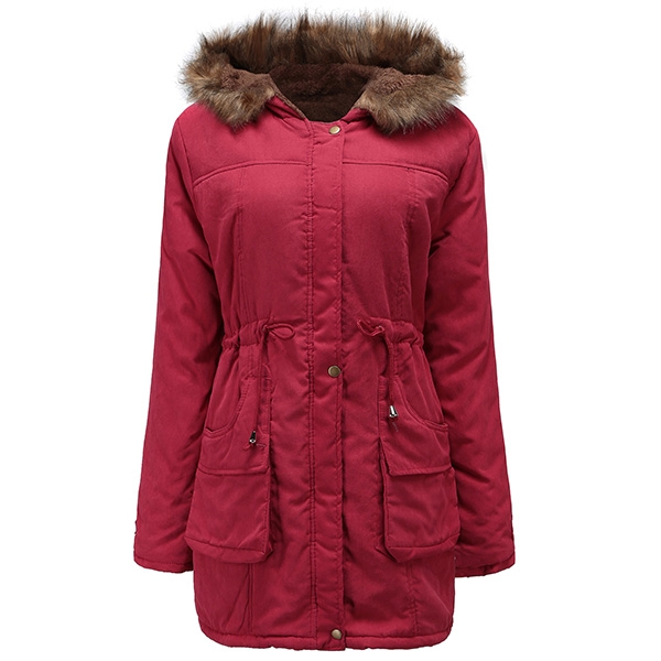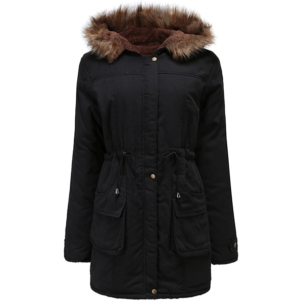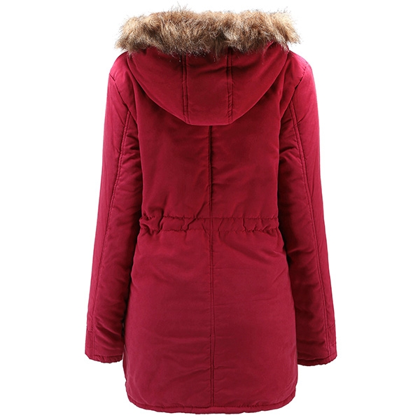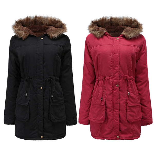 Greet the chilly winter with this warm padded coat. Comes with a solid color,the faux fur spliced