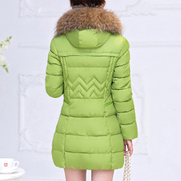 finished with long sleeve,faux fur spliced hooded and a fit silhouette,elegant,refined,warm and stylish.