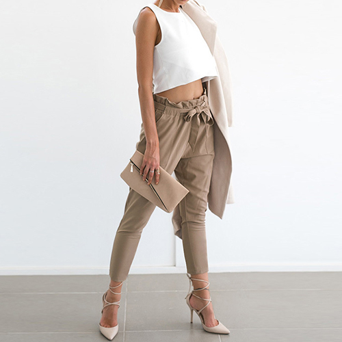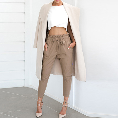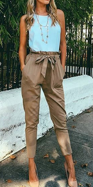And its flouncing waist and waist strap design makes this pants look more attractive. Perfect