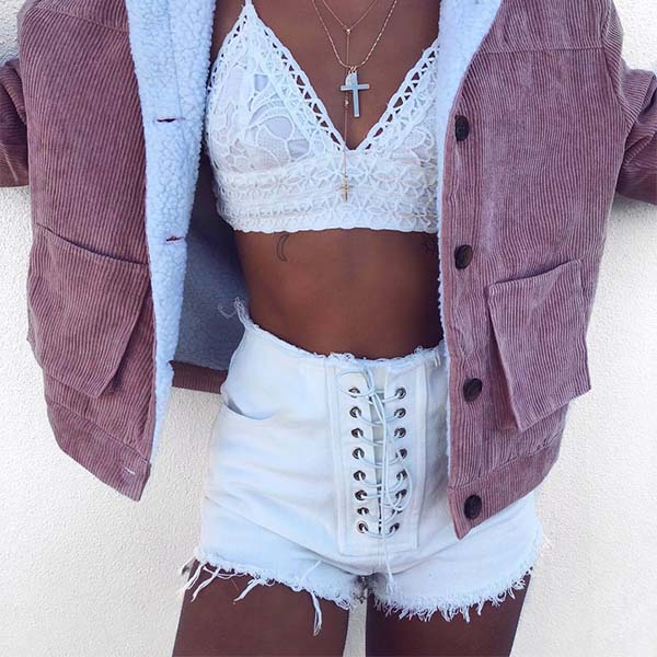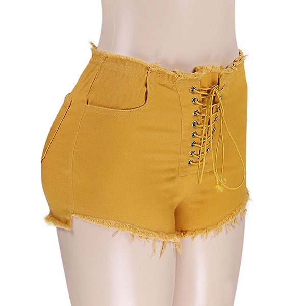 So we suggest you this shorts! Solid color style,the frayed hem and lace-up design make this piece look