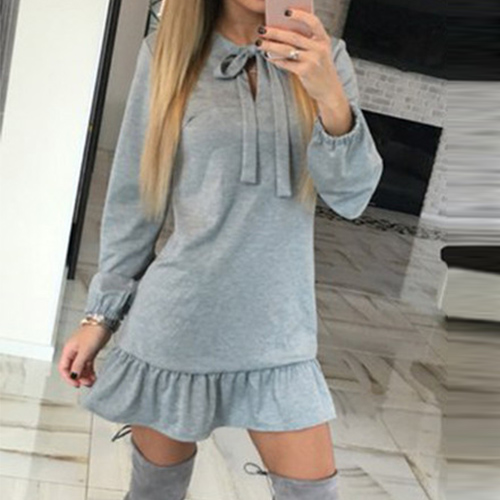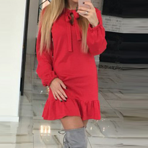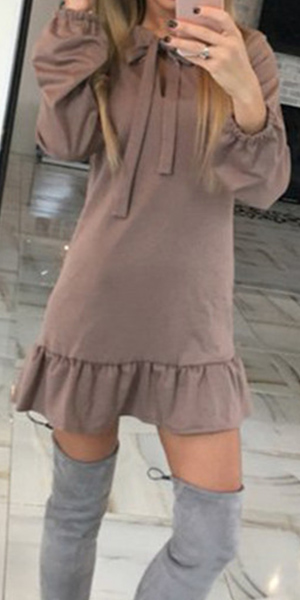long sleeve and ruffle hemline, this dress makes a new definition for your concise and pretty look.