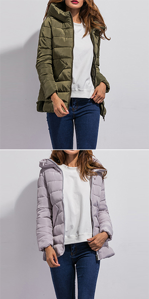 this solid-colored piece can give you the best rest and cold protection. Front zipper design is paired with hooded