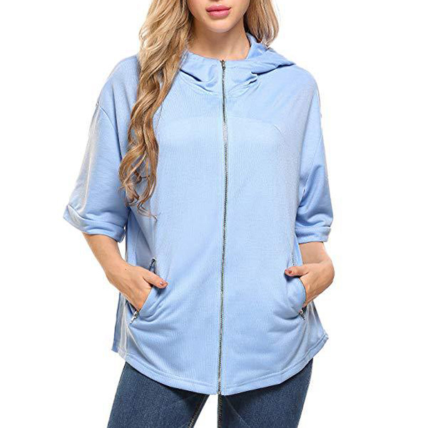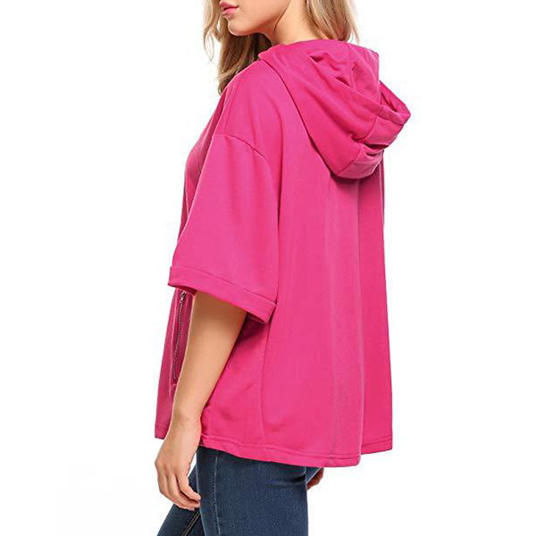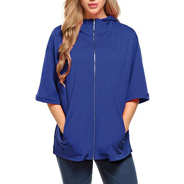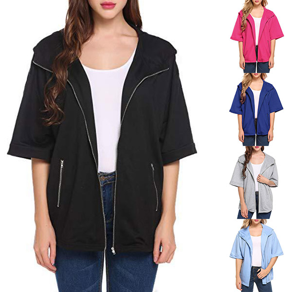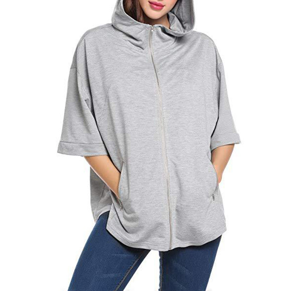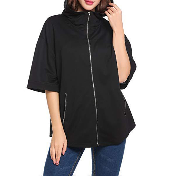 half sleeve,hooded silhouette and front zipper closure,chic yet stylish. The zipper pockets design can