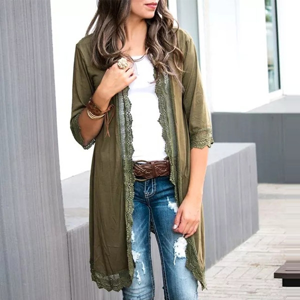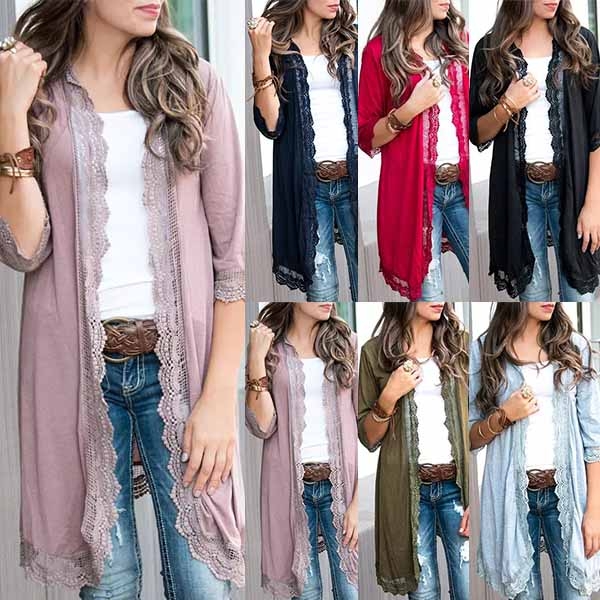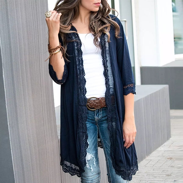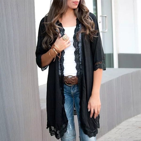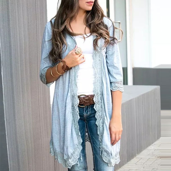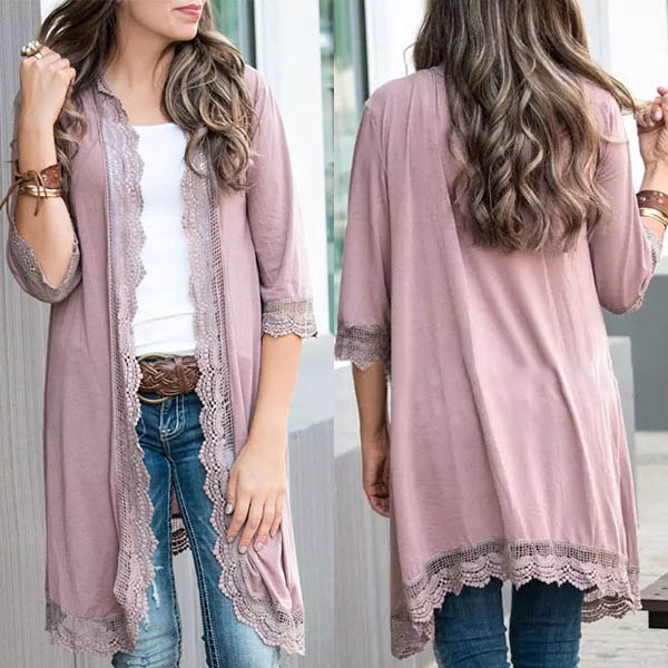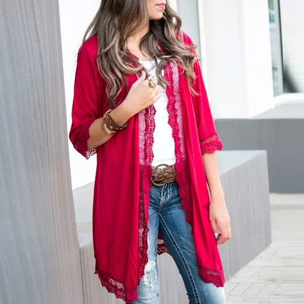 Fashion Solid Color Half Sleeve Lace Spliced Cardigan