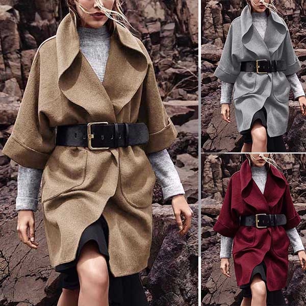 Finished with solid color,long sleeve and lapel design,this woolen coat is worth for your investment.