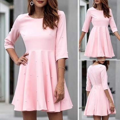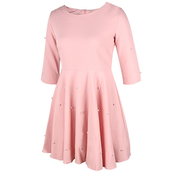 and charming image. Boasts a sweet pink tone,finished with half sleeve,round neck and beaded details,