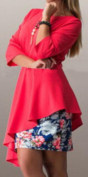 irregular hem design. Try to pair it with your package hip bust skirt. Of course,adding a stunning