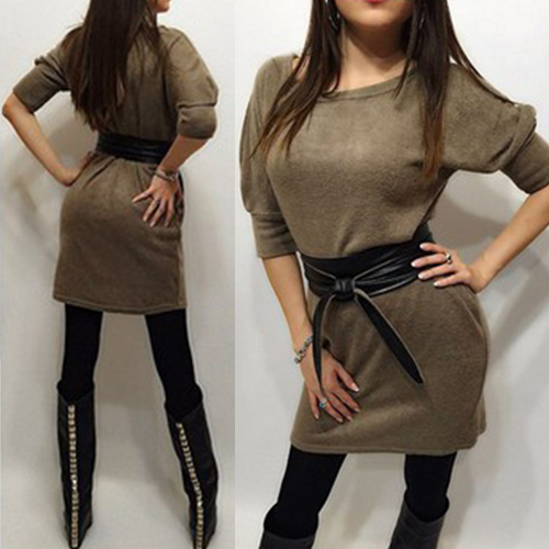 Solid color style,outfitted with half sleeve and a round neckline,simple and stylish.