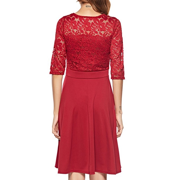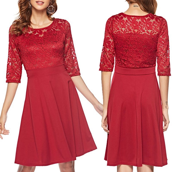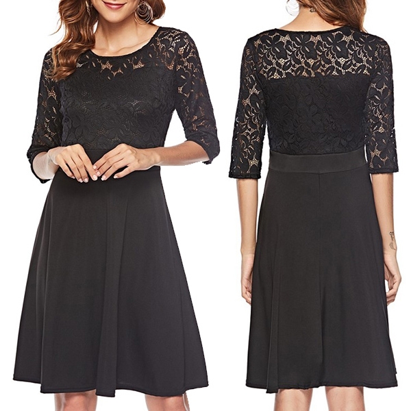 so generous and elegant. Finished with half sleeve and round neck design,the lace spliced design