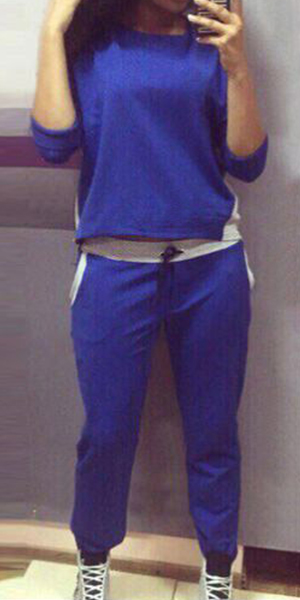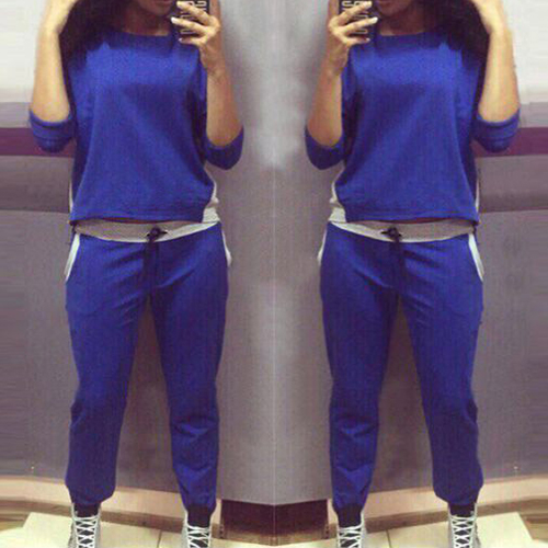 Solid color style,including a half sleeve round neck tops and an elastic waist pants,this sports suit can give you