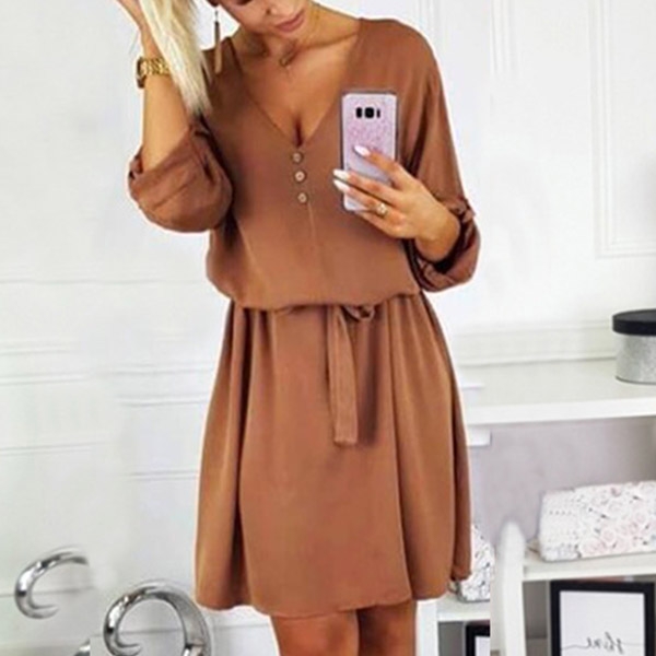 No matter for your busy workdays or weekend out,this dress can be your wise choice. Boasts a solid color,