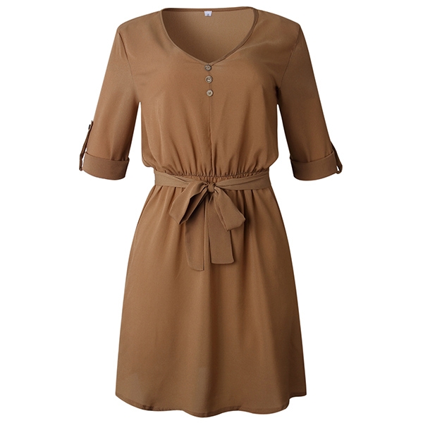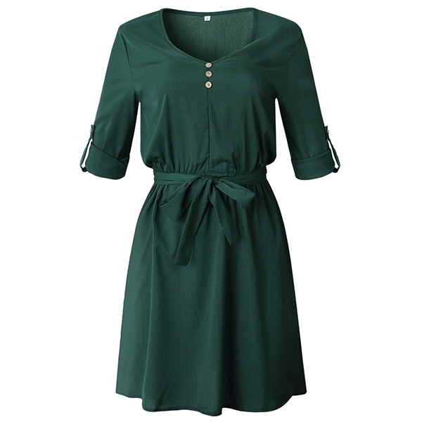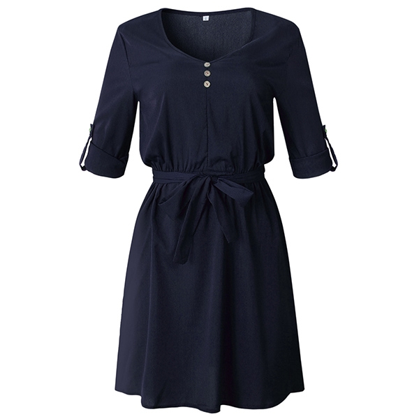 finished with half sleeve and v-neck design,this dress knows how o give you a cozy yet stylish style.