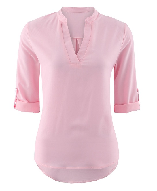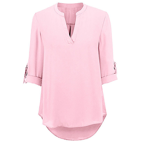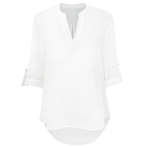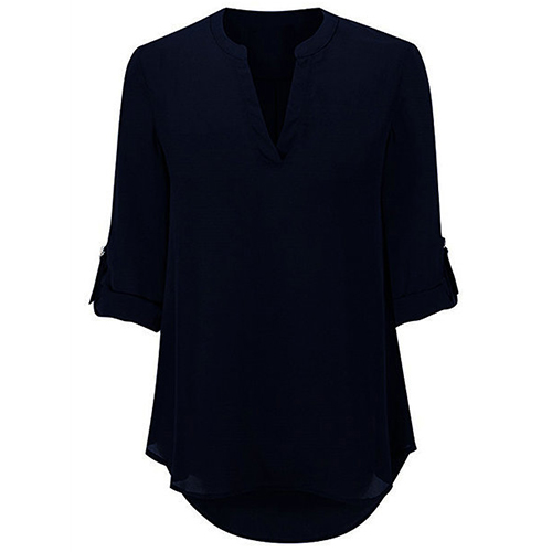 Opt for this blouse to achieve for a stylish style. Solid color style,with half sleeve,v-neck and a high-low hem,chic and distinctive.