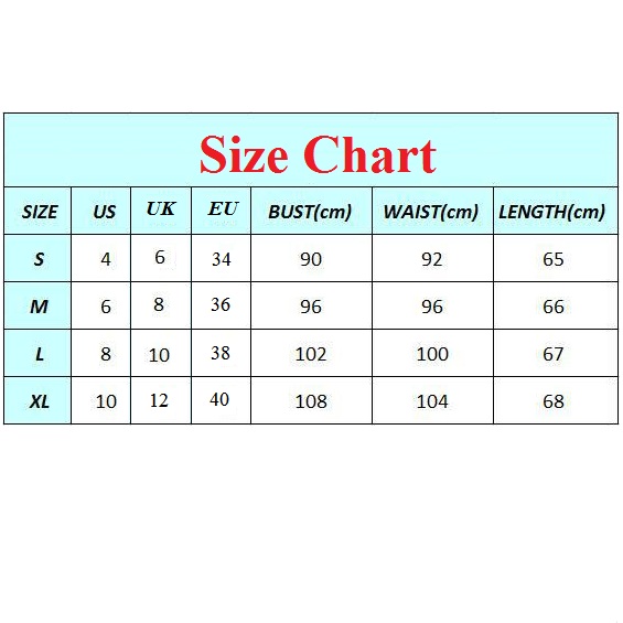 S : Bust : 90cm(35.43"); Waist : 92cm(36.22"); Length : 65cm(25.59");