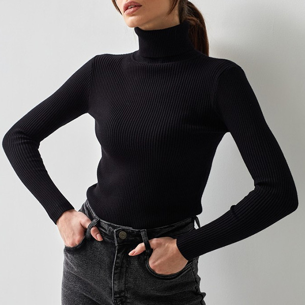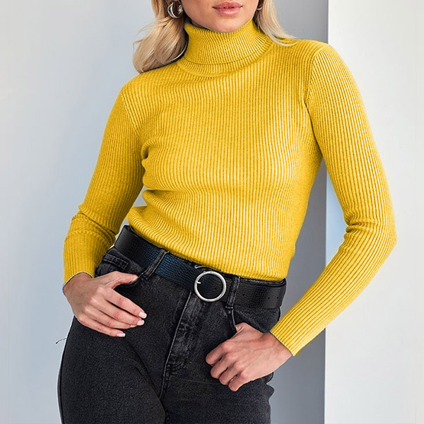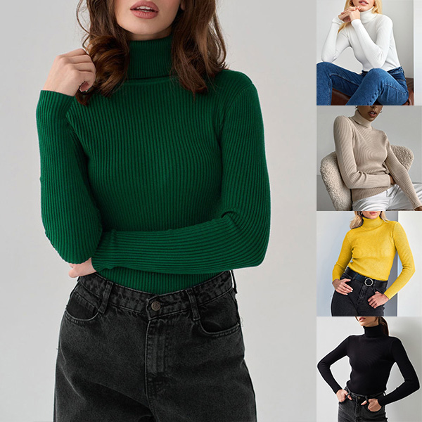 Fashion Solid Color High-neck Long Sleeve Slim Fit Casual Sweater