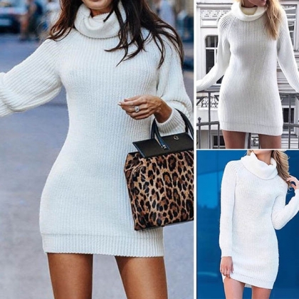 This knit sweater features solid color style,with long sleeve and high neck design,classic and stylish.