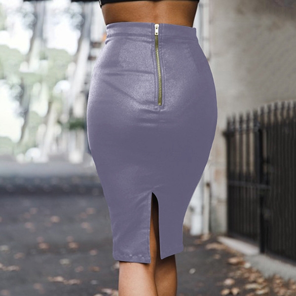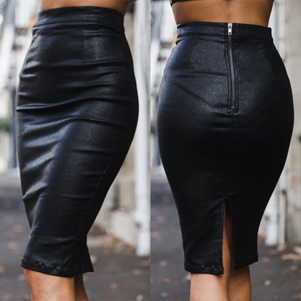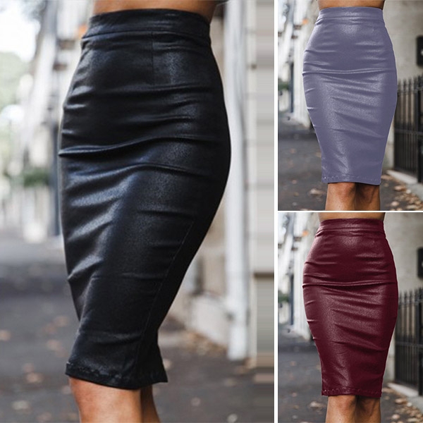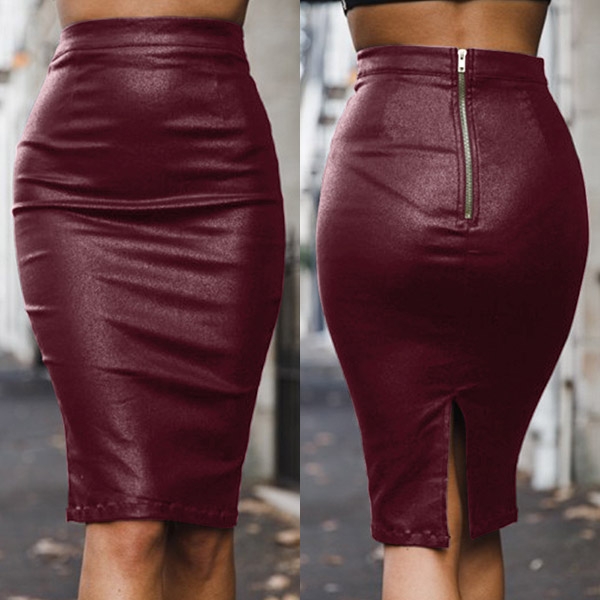 Your charming feminine appeal can have a full display when you wear this PU leather skirt.
