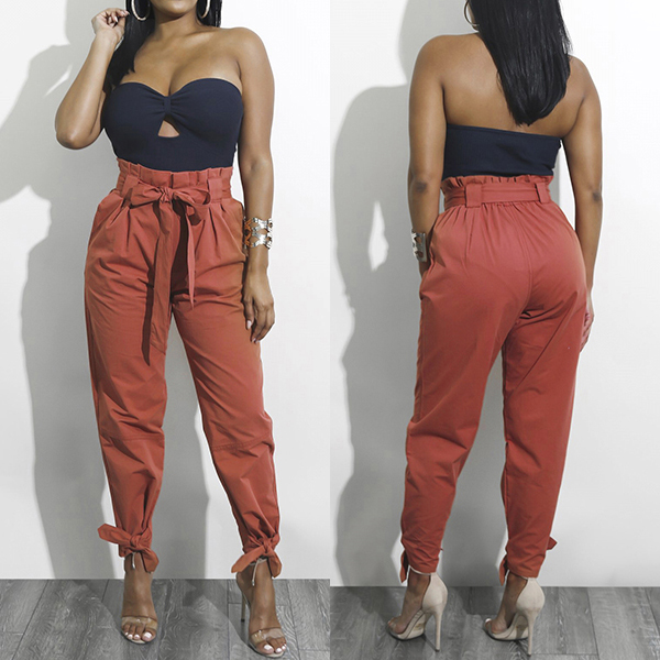 This different style pants can enrich your simple wardrobe ensemble. Solid color style,high waist design can