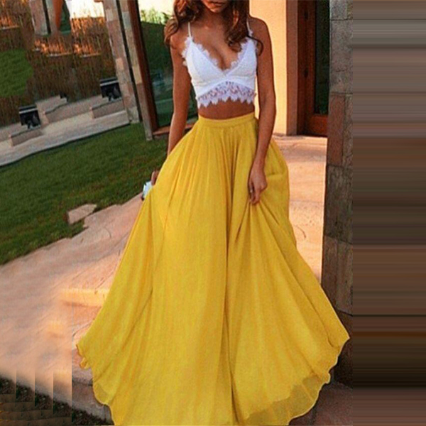 Features a bright yellow tone,which can better highlight your charming skin. And its high waist and maxi length design