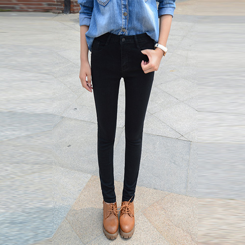 This jeans features solid color style,with high waist and slim fit deisgn,is a perfect way to show off