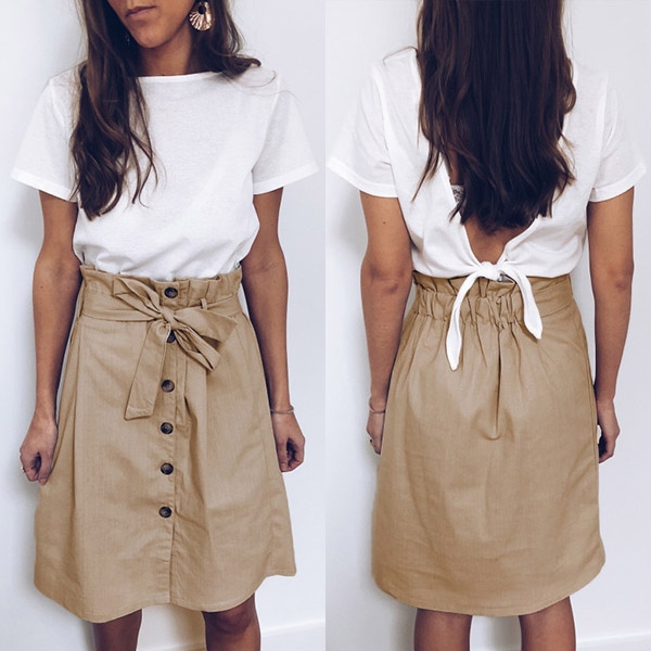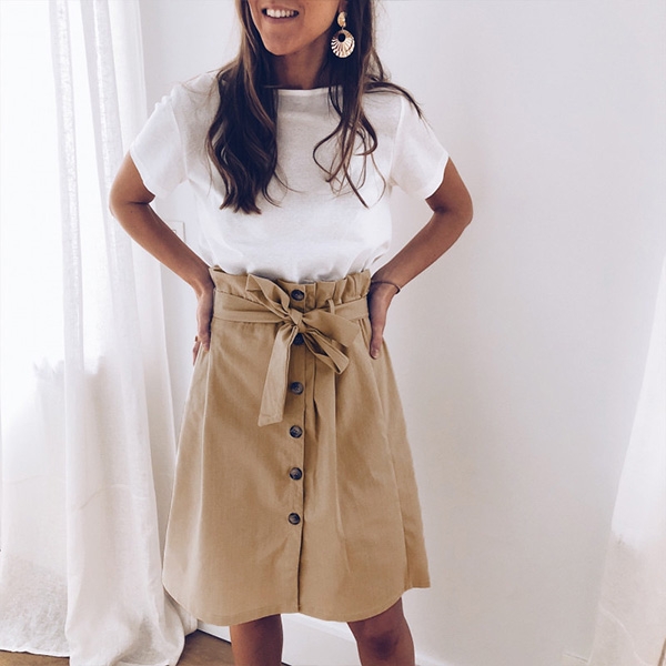 waist and front-button design,this wonderful skirt can hardly go wrong no matter what
