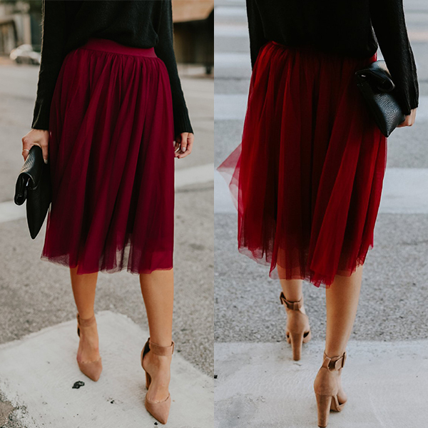 This gauze skirt is features a solid color style,designed with high waist and multilayer hem,which not only can